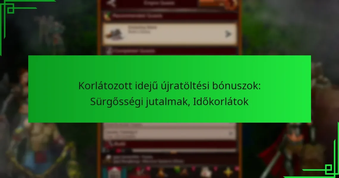 A Korlátozott Idejű Újratöltési Bónuszok vonzó ösztönzők, amelyek arra motiválják a játékosokat, hogy a megadott időkereten belül vásároljanak a játékban, fokozott értéket kínálva további erőforrások vagy jutalmak formájában. A sürgősség érzésének megteremtésével ezek az időérzékeny ajánlatok gyors döntéshozatalra ösztönzik a játékosokat, biztosítva, hogy ne maradjanak le értékes előnyökről. A bónuszok kihasználásához elengedhetetlen, hogy kövessük a platform által megadott konkrét beváltási utasításokat, mivel ezek csak rövid ideig érhetők el. Key sections in the article: Toggle Mi az a Korlátozott Idejű Újratöltési Bónusz? A bónuszok meghatározása és célja A rendelkezésre álló bónuszok típusai A jogosultság feltételei Gyakori bónuszpéldák A Küzdelem Hatása a…